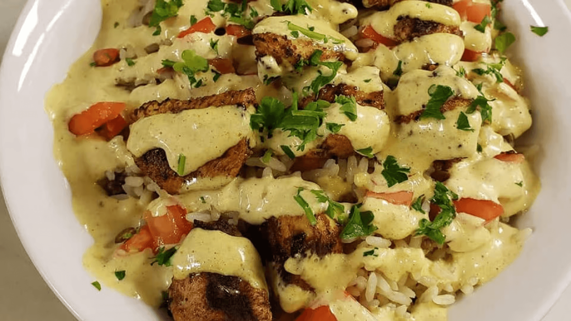 "Not sure you can go wrong with any menu item. Everything my family and I have tried has been delicious. Some of the best fresh hummus and Chicken Shawarma Bowls around. Portions are a fair size and we have ordered several times."